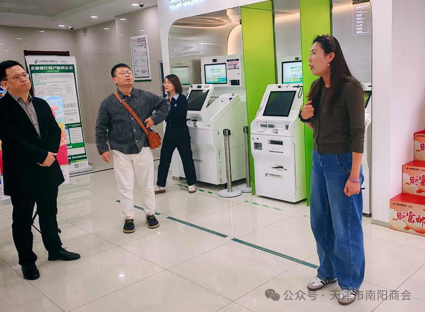 活动最后,全体与会嘉宾一起参观了邮储银行津南区支行的服务大厅,听取了支行领导的介绍并合影留念,记录下银商携手、共谋发展的这一重要时刻。本期活动在充满希望与信心的氛围中圆满落幕,它不仅是一次成功的金融对接会,更是一次凝聚共识、共创未来的动员会,为在津宛商在复杂经济环境中破浪前行注入了坚定的信心与强劲的动力。
