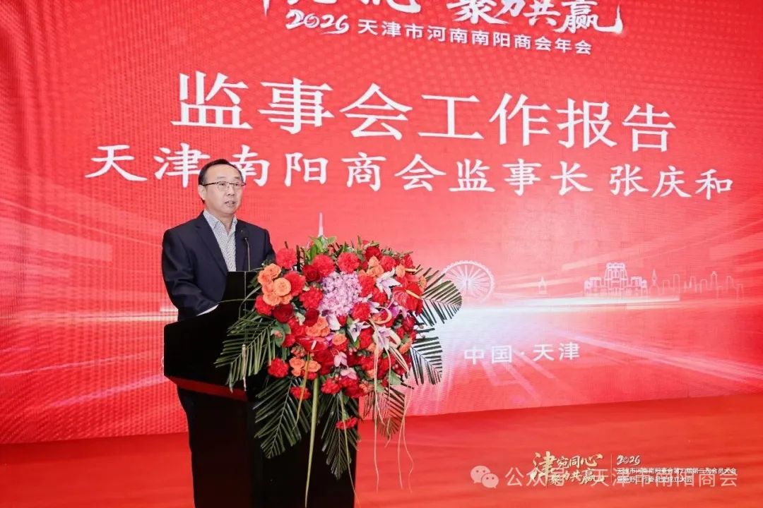 大会进入第二阶段——天津南阳商会年会环节。大会播放了2025年南阳商会工作回顾视频,视频简要回顾了南阳商会2025年的工作,一张张珍贵的照片、一个个精彩的瞬间,全景展现了商会在党建引领、团队建设、会员服务、技术交流、社会责任与公益事业等方面开展的工作,引发了全体与会人员的强烈共鸣。